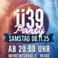 Am Samstag, den 08.11.2025 findet ab 20:00 Uhr in der Mehrzweckhalle Hegge die 17. Auflage der beliebten Ü39-Party statt.