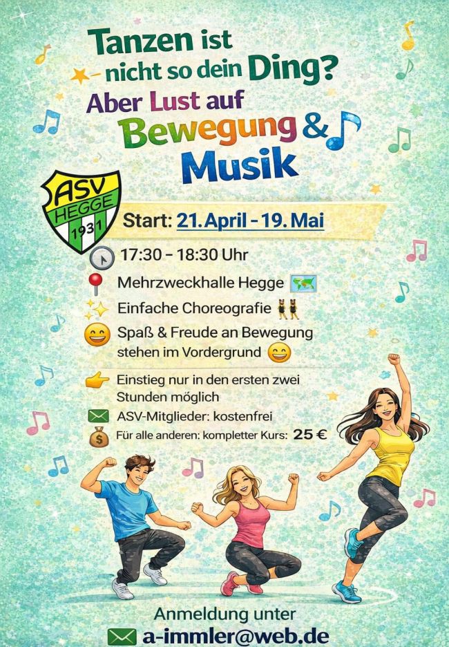 Weitere Infos: Nicole - eMail: maedchenturnen@asv-hegge.de