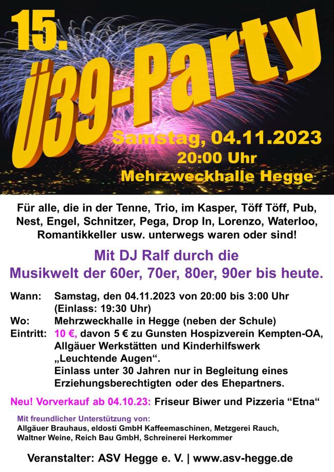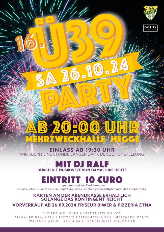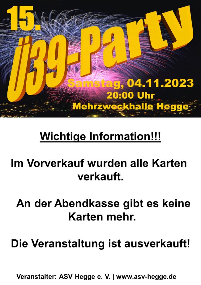 ASV Hegge - Ue39-PartyDie 17. Ü39-Party des ASV Hegge 2025